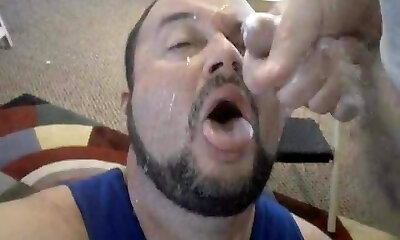 Skinny skinny boy and big dick daddy spunk all over each other with hot cum from ass toy!
